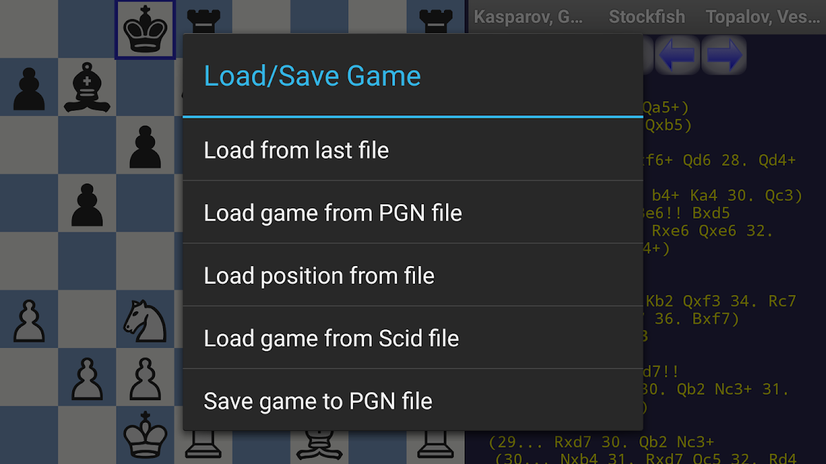 DroidFish is an Android port of the very strong Stockfish chess engine, combined with a feature-rich graphical user interface.