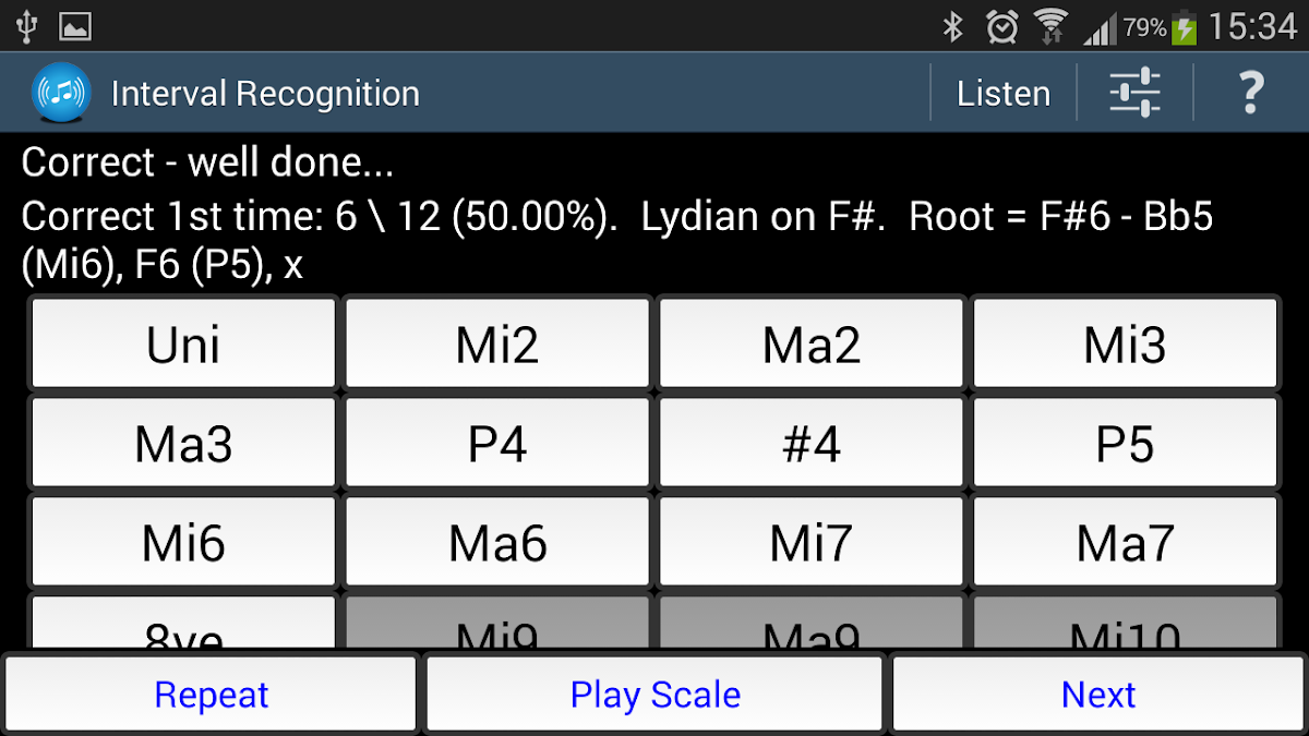 Klinij w ikonę Interval Recognition ear train na ekranie startowym, aby zacząć grę