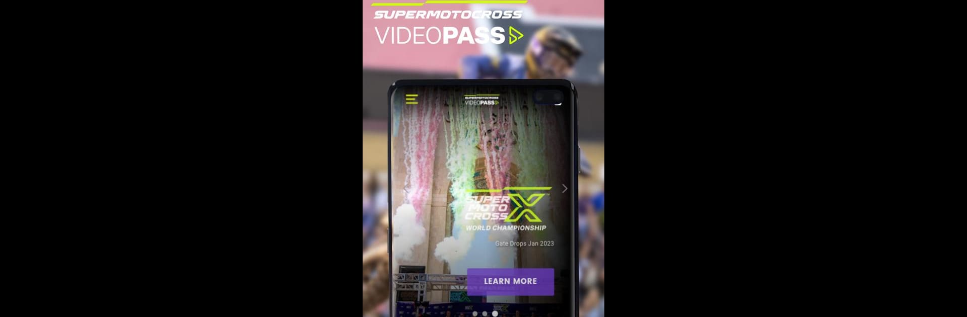 SuperMotocross Video Pass es tu entrada exclusiva para seguir cada emocionante minuto de las temporadas 2023 de Monster Energy Supercross y AMA Pro Motocross, además de los nuevos Playoffs y Finales SuperMotocross. Por 10 meses y a lo largo de 31 carreras, vive la pasión del motocross con acceso ilimitado a un espectáculo único, transmitido por Feld Entertainment, Inc.