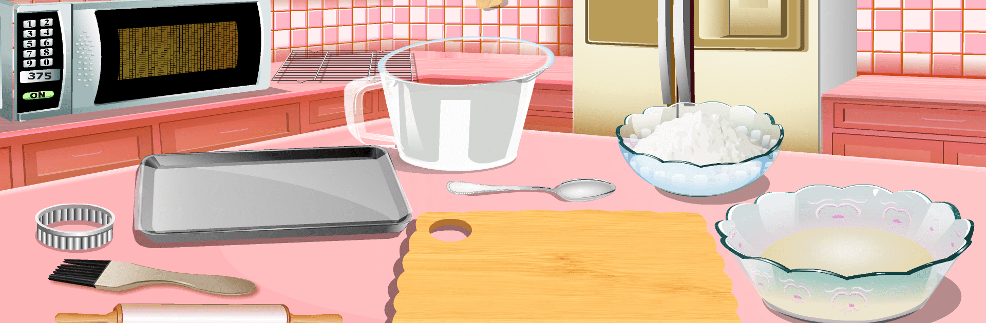 Dapurnya interaktif banget! Kamu bakal dikasih tugas buat cari alat dan bahan masak dari lemari dan laci. Kadang suka ke-distract sama printilan kecil yang lucu-lucu lho. -