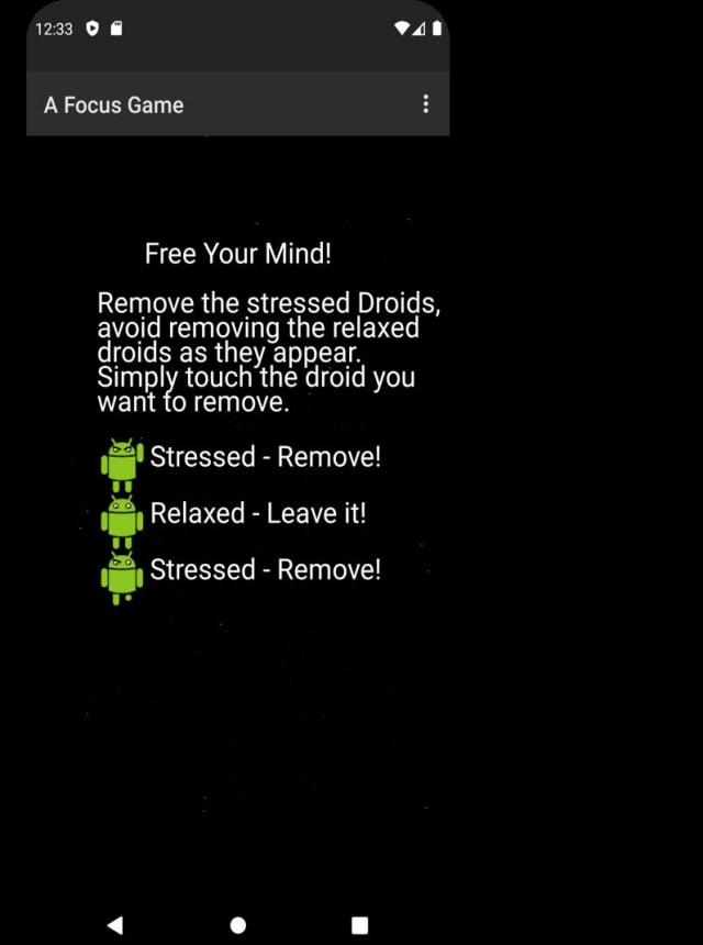 A Focus Game, criado por SchwartzEngine, é um quebra-cabeça envolvente que desafia sua capacidade de foco e paz interior. Com um objetivo simples, mas sofisticado, você deve distinguir entre dróides estressados e normais, removendo apenas os estressados. É tudo sobre manter a concentração e testar seus reflexos.
