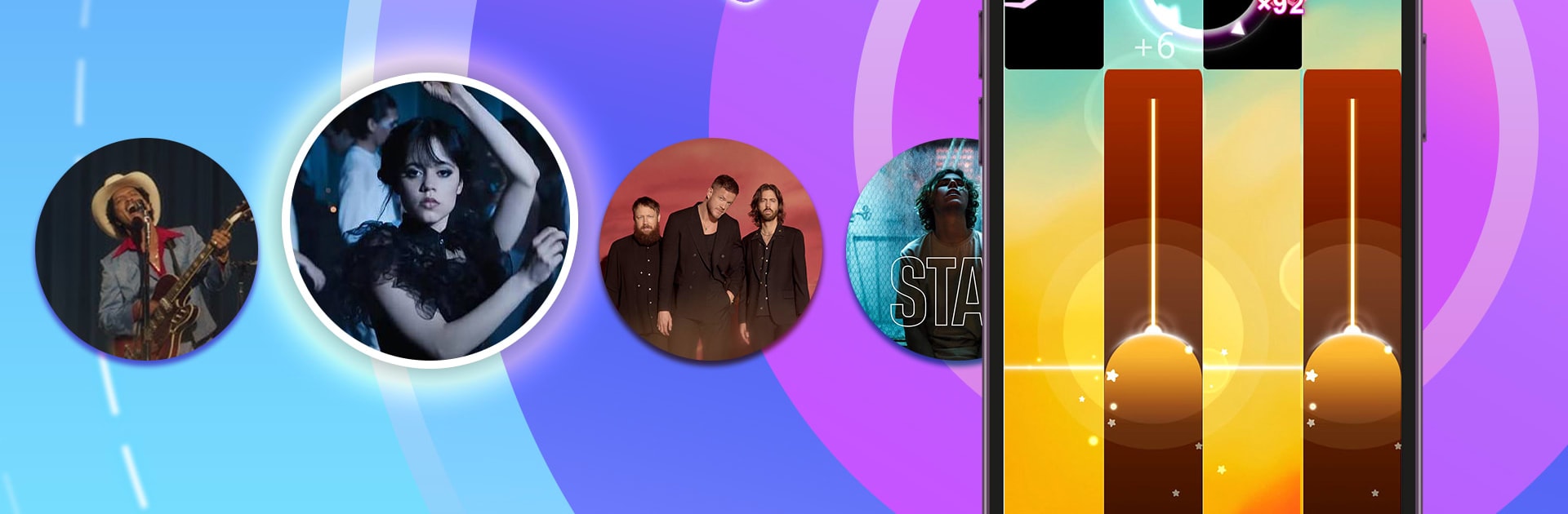 Треки ускоряются, паттерны усложняются, а вы жонглируете касаниями, удержаниями и свайпами — каждое действие синхронно музыке, без лишней задержки. -