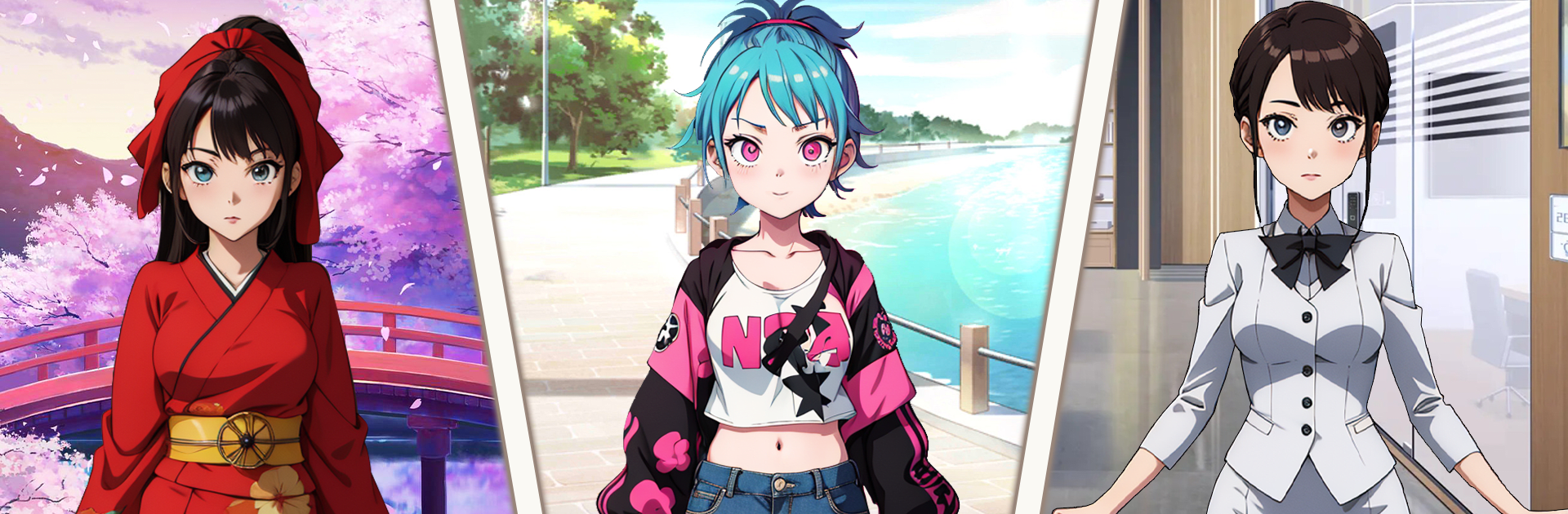 Все персонажи и наряды выполнены в ярком, сразу узнаваемом стиле аниме. Для фанатов жанра — целое удовольствие создавать новые образы. -