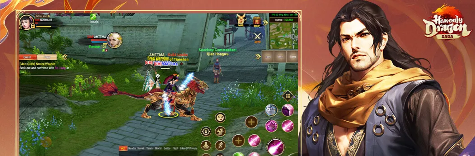 Heavenly Dragon Saga เป็น MMORPG จีนกำลังภายในที่เล่าเรื่องยุทธภพแบบจัดเต็ม กลิ่นอาย 8 เทพอสูรมังกรฟ้ามาชัด ทั้งดราม่าสำนักเก่า คัมภีร์ลับ และทางเลือกที่ส่งผลกับชะตาของตัวละคร ผู้เล่นเริ่มจากเลือกสำนักดังอย่างเส้าหลิน บู๊ตึ๊ง หรือง๊อไบ๊ แล้วออกเดินทางในแผนที่กว้าง สำรวจเมืองโบราณ ภูเขา แม่น้ำ ไปจนถึงสถานที่ประวัติศาสตร์ที่แอบซ่อนของดีไว้ ระหว่างทางมีคัมภีร์ลับกับอาวุธโบราณให้ตามเก็บ งานภาพออกแนวจีนโบราณสีสวยตาไม่ล้า แสงเงาและชุดเกราะดูดี รายละเอียดฉากเยอะพอให้หยุดยืนมองเล่น