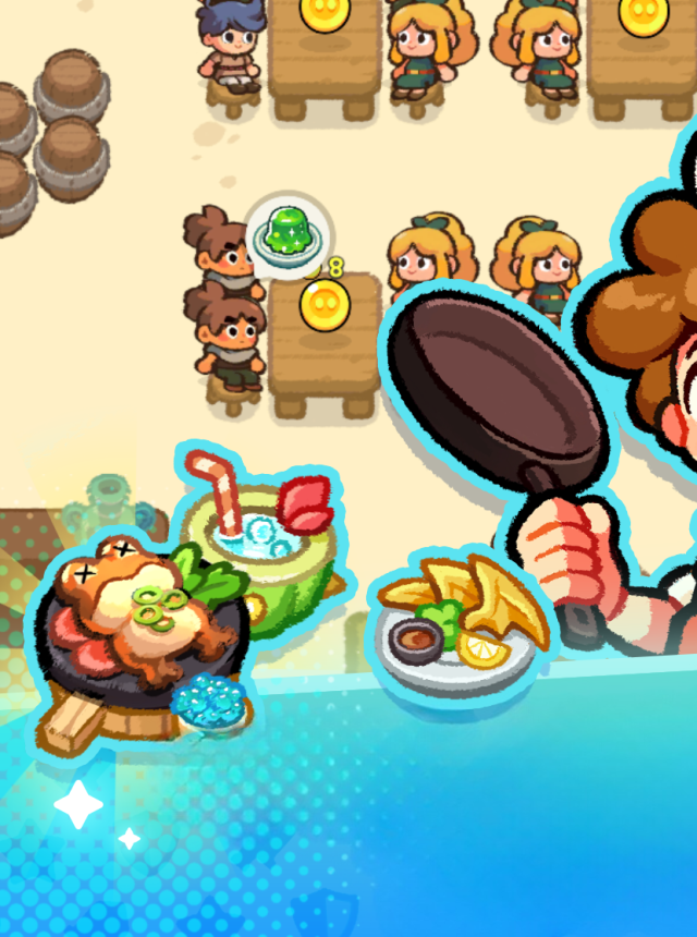 把打來的素材拿去開火,準備客人最想點的料理。你要顧產能與庫存,避免缺料或囤太多;餐廳也能逐步擴張,座位更多、設備更順手,收入更穩定,讓戰鬥與經營互相滾動成良性循環。 -