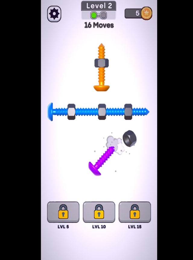 在「Nut Switch」,您將踏上一段獨特的拼圖旅程,由Ragendom設計的這款遊戲既能挑戰您的腦力又能舒緩壓力。目標很簡單:旋轉和移動螺帽,解鎖關鍵位置的螺栓。每一關都充滿了全新的挑戰和驚喜,玩家需要以創意和策略性思維來解決難題。