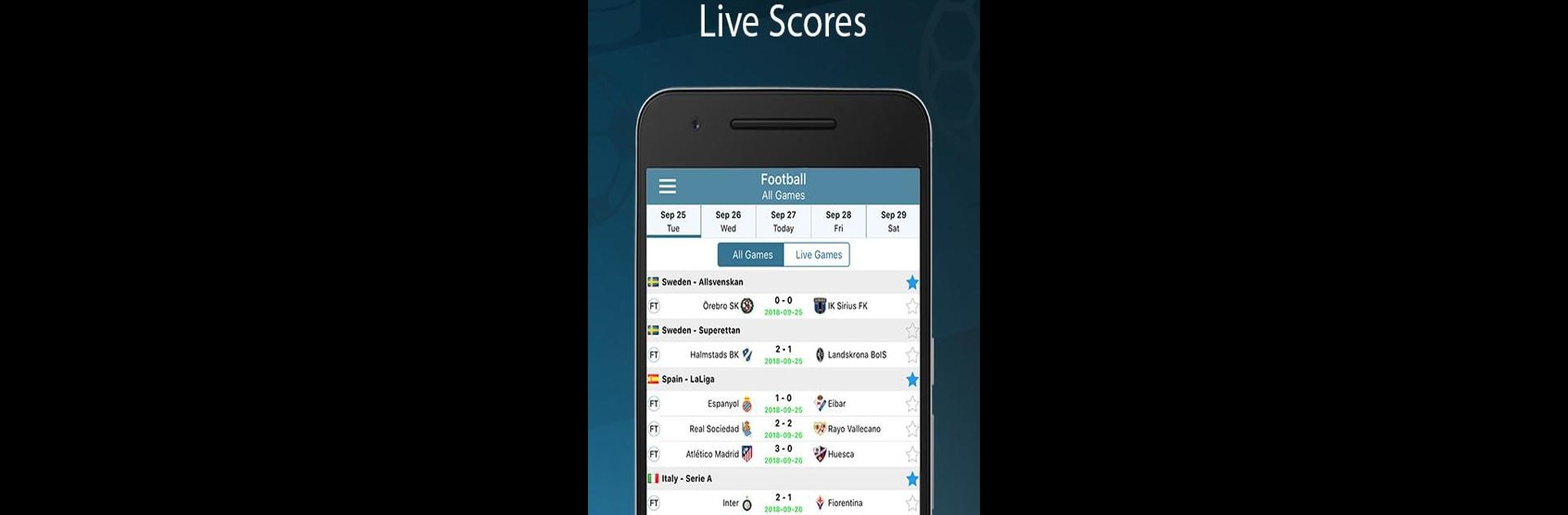 - 默認提供足球聯賽資訊,不過您可通過菜單輕鬆切換查詢其他運動的比賽,滿足各類體育迷的需求。