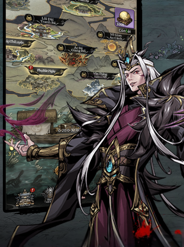 Phần nuôi tướng thì đủ thứ để chạm vào: nâng phẩm, luyện hóa tài nguyên, mở hiệu ứng biến hình, rồi thức tỉnh tuyệt học cho tướng chủ lực. Tám môn phái có bí kíp riêng khiến phong cách dựng đội khác hẳn nhau, không bị dập khuôn. Chế độ chơi cũng rải đều: leo Tháp Thí Luyện để gom nguyên liệu, đụng độ Ma Thần cổ, PVP Lôi Đài Tranh Bá leo bảng, Bắc Trấn Phủ Ty kiểu áp tải lấy tài nguyên, rồi có cả Võ Lâm Tranh Bá để so kèo trang bị bí tịch. Chiến trường chia tuyến trước và sau nên tướng chống chịu đứng sai ô là vỡ đội, mỗi lượt đều có rủi ro và cơ hội, không phải bấm auto là xong.